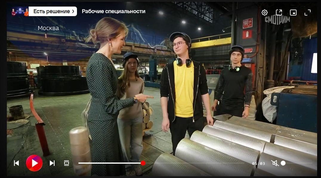 Марина Громова пообщалась с участниками экскурсии, которая в этот момент проходила на «Москабельмет», — учащимися 10-го инженерного класса ГБОУ Школа 547. Такие экскурсии для профильных классов — часть системной работы предприятия по профессиональной подготовке молодых специалистов.«Москабельмет» в сюжете о кадровых вопросах на «Россия 24» https://ruscable.ru/link/SHk6385 В эфир телеканала «Россия 24» вышла программа «Есть решение» с участием «Москабельмет». Выпуск посвящен актуальным кадровым вопросам, включая ситуацию на рынке труда, выбор рабочих профессий и трудоустройство молодых специалистов. Съемочную группу телеканала, приехавшую на предприятие, возглавила ведущая выпуска Марина Громова. Марина уже более 10 лет работает на ВГТРК, является корреспондентом правительственного пула, дважды лауреат премии Мэра Москвы в области журналистики. Марина Громова пообщалась с участниками экскурсии, которая в этот момент проходила на «Москабельмет», — учащимися 10-го инженерного класса ГБОУ Школа 547. Такие экскурсии для профильных классов — часть системной работы предприятия по профессиональной подготовке молодых специалистов.0 Комментарии 0 Поделились 12 Просмотры3