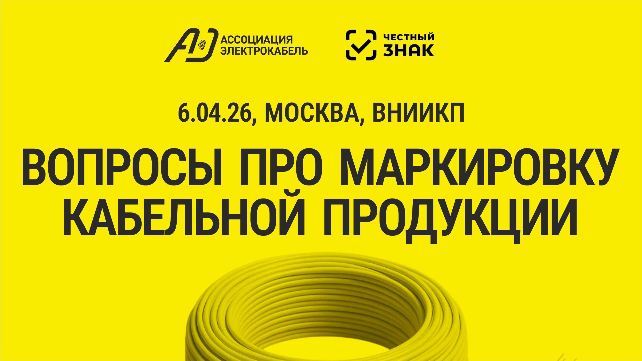 Зарегистироваться на мероприятие и подтвердить участие необходимо по электронной почте. Для этого необходимо направить список ФИО, должность и контакты на info@elektrokabel.ru до 1 апреля 2026 года. Число мест ограничено!Маркировка кабельной продукции 2026. Большой семинар Ассоциации «Электрокабель» с «Честным знаком» состоится 6 апреля 2026 года во ВНИИКП https://ruscable.ru/link/Qdh6595 Ассоциация "Электрокабель" продолжает работу с регулятором и кабельным сообществом для того, чтобы минимизировать риcки и последствия внедрения маркировки на кабельном рынке, и проведет большой очный семинар по теме маркировки 6 апреля 2026 года с представителями кабельной отрасли, оператором системы "Честный знак" и интеграторами цифровых решений по маркировке в кабельной отрасли. На данный момент ожидается свыше 120 участников. В программе семинара: результаты пилотных проектов на кабельных предприятиях;. порядок внедрения маркировки, сроки, типы идентификационных средств; особенности работы с ГОЗ, маркетплейсами и контрактными производствами; маркировка при экспорте и импорте. Руководители предприятий Ассоциации «Электрокабель» приглашаются принять участие в семинаре 6 апреля 2026 года с 11:00 до 15:00. Место проведения: г. Москва, ш. Энтузиастов д.5, конференц-зал ОАО «ВНИИКП» (2 этаж). Зарегистироваться на мероприятие и подтвердить участие необходимо по электронной почте. Для этого необходимо направить список ФИО, должность и контакты на info@elektrokabel.ru до 1 апреля 2026 года. Число мест ограничено!0 Комментарии 0 Поделились 20 Просмотры3