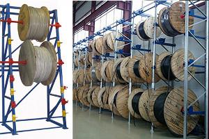 Это вертикальный стеллаж, предназначенный для хранения барабанов (катушек) с кабелем, проводом и прочих длинномерных материалов.
